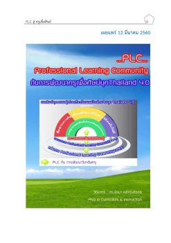 เอกสาร PLC : Professional Learning Community กับการพัฒนาครูเพื่อศิษย์ ยุค Thailand 4.0 ผู้เรียบเรียง ดร.นัตยา หล้าทูนธีรกุล ศึกษานิเทศก์ สำนักงานเขตพื้นที่การศึกษาประถมศึกษาขอนแก่น เขต 5 เป็นศึกษานิเทศก์ผู้รับผิดชอบการขับเคลื่อนจุดเน้นการปฏิรูปการศึกษา 6 ยุทธศาสตร์ ของกระทรวงศึกษาธิการ ได้จัดทำขึ้น เพื่อใช้ในการอบรมเชิงปฏิบัติการแก่ครูในนโยบายการจัดการศึกษาของกระทรวงศึกษาธิการ เรื่อง การจัดการเรียนรู้ แนว Active Learning แนว STEM Education และการจัดการเรียนรู้ภายใต้กรอบแนวคิด Thailand 4.0 โดยนำกระบวนการของ PLC : Professional Learning Community สู่สถานศึกษา ผ่านภาระงานการออกแบบหน่วยการเรียนรู้และการจัดการเรียนรู้สู่คุณภาพผู้เรียนยุค Thailand 4.0