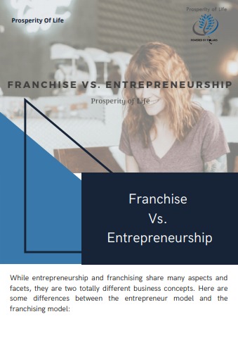 While entrepreneurship and franchising share many aspects and facets, they are two totally different business concepts. Here are some differences between the entrepreneur model and the franchising model: Entrepreneur Model One of the biggest differences between entrepreneurship and franchising is that entrepreneurs create the business structure and concept. For more details visit us: https://prosperityoflifeint.com/franchise-vs-entrepreneurship/