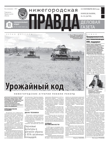 Нижегородская правда №53 от 11 сентября 2023 года