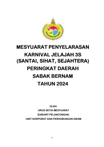 Buku Mesy. Penyelarasan Karnival Jelajah 3S (Santai, Sihat, Sejahtera) Daerah Sabak Bernam 2024