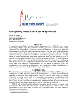 Is drag racing louder than a NASCAR speedway? Timothy M. Johnsona Christopher W. Mengeb Harris Miller Miller & Hanson Inc. 77 South Bedford Street