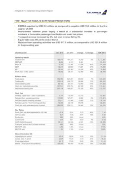 29 April 2015 | Icelandair Group Interim Report FIRST-QUARTER RESULTS SURPASSED PROJECTIONS ǀ EBITDA negative by USD 2.3 million, as compared to negative USD 13.3 ...