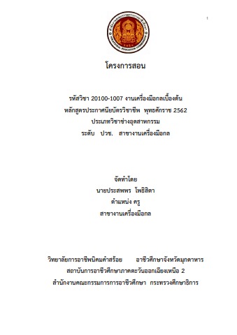แผนการจัดการเรียนรู้ วิชางานเครื่องมือกลเบื้องต้น