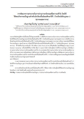 การพัฒนาความสามารถในการอ่านภาษาอังกฤษเพื่อความเข้าใจ โดยใช้ วิธีสอนกิจกรรมเป็นฐานสำหรับนักเรียนชั้นมัธยมศึกษาปีที่1 โรงเรียนโยธินบูรณะ 2 (สุวรรณสุทธาราม)