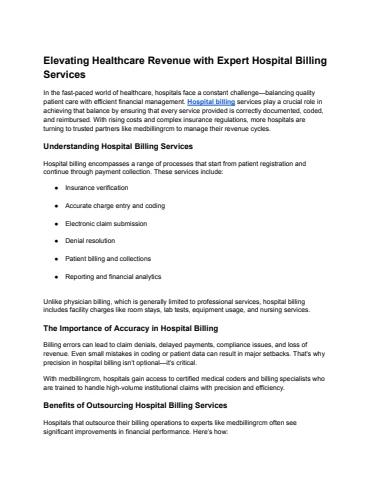 Elevating Healthcare Revenue with Expert Hospital Billing Services