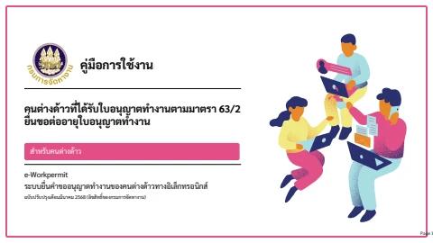 คู่มือ - คนต่างด้าวที่ได้รับใบอนุญาตทำงานตามมาตรา 63/2 ยื่นขอต่ออายุใบอนุญาตทำงาน