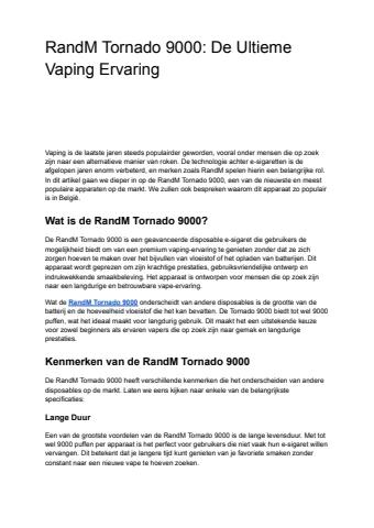 De RandM Tornado 9000 is een geavanceerde wegwerp-vape die tot 9000 puffs biedt voor een langdurige en consistente dampervaring. Dit apparaat combineert krachtige prestaties met een breed scala aan smaken, waardoor het perfect is voor zowel beginners als ervaren vapers.