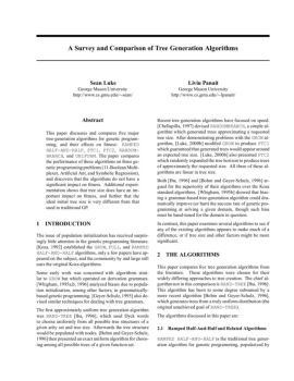 A Survey and Comparison of Tree Generation Algorithms Sean Luke George Mason University http://www.cs.gmu.edu/˘sean/ Liviu Panait George Mason University