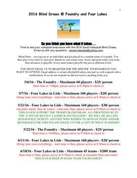 1 2016 Blind Draws @ Foundry and Four Lakes So you think you have what it takes . . . So you think you have what it takes . . . Time to test your volleyball endurance ...