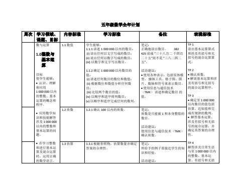 五年级全年数学教学计划