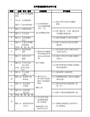 五年级健康教育全年计划