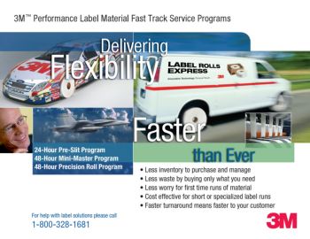 3M™ Performance Label Material Fast Track Service Programs Delivering 1 2 than Ever Flexibility Faster 3 24-Hour Pre-Slit Program 48-Hour Mini-Master Program