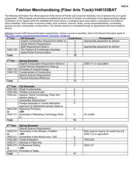 10/8/14 Fashion Merchandising (Fiber Arts Track)/ H40103BAT The following information has official approval of the School of Family and Consumer Sciences, but is ...
