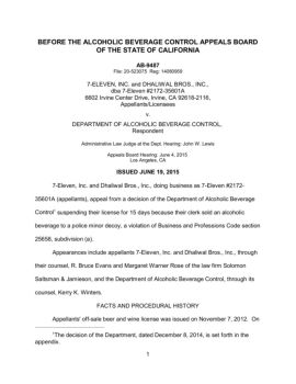 before the alcoholic beverage control appeals board of the state of california ab-9487 file: 20-523075 reg: 14080959 7-eleven, inc. and dhaliwal bros., inc.,