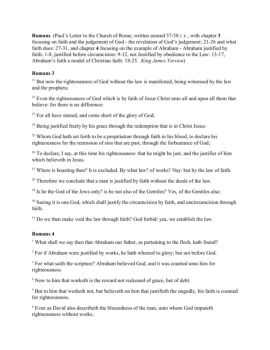 Romans (Paul’s Letter to the Church of Rome, written around 57-58 C.E., with chapter 3 focusing on faith and the judgement of God - the revelation of God’s ...