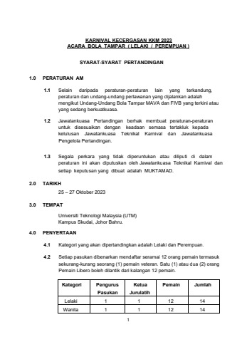 VOLLEYBALL KKM - PERATURAN PERTANDINGAN ( PINDAAN )