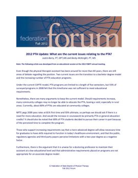 © Federation of State Boards of Physical Therapy Fall 2012 Forum. 2012 PTA Update: What are the current issues relating to the PTA? Justin Berry, PT, DPT,MS and ...