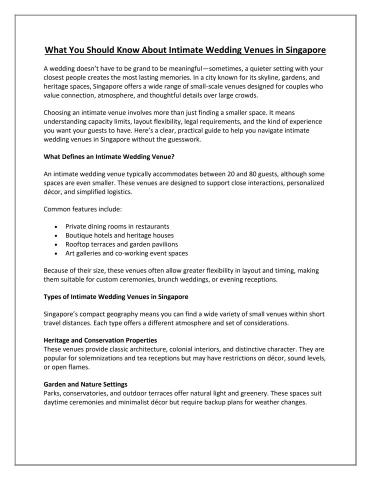 Planning a small wedding? Practical insights into intimate wedding venues in Singapore, including venue types, capacity limits, costs, legal rules, and guest comfort factors.