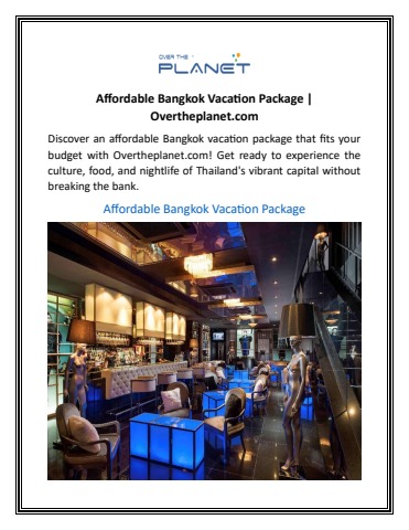 Discover an affordable Bangkok vacation package that fits your budget with Overtheplanet.com! Get ready to experience the culture, food, and nightlife of Thailand's vibrant capital without breaking the bank.