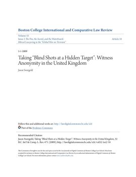 TAKING “BLIND SHOTS AT A HIDDEN TARGET”: WITNESS ANONYMITY IN THE UNITED KINGDOM Jason M. Swergold* Abstract: Witness intimidation has become an increasing ...