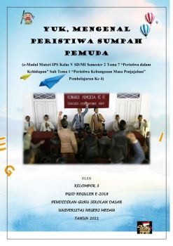 Sebuah e-modul IPS Kelas V SD/MI Semester 2 Tema 7 “Peristiwa dalam Kehidupan” Sub Tema 1 “Peristiwa Kebangsaan Masa Penjajahan” Pembelajaran Ke 4 dengan materi PERISTIWA SUMPAH PEMUDA.