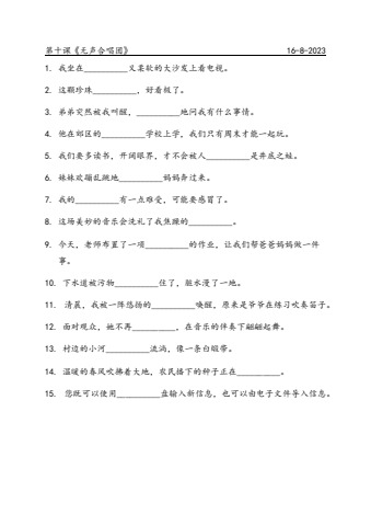 五年级第十课词语填充2023