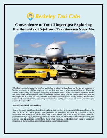 Convenience at Your Fingertips Exploring the Benefits of 24-Hour Taxi Service Near Me