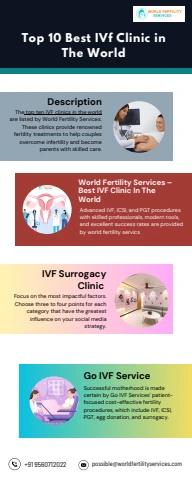 For people dealing with infertility or genetic issues, the Top 10 Best IVF Clinics in the World provide honest, professional care. These well-known facilities assist couples in becoming parents by backing them with expert guidance and modern technology. By focusing on personal care and education, we enable patients learn about their infertility problems and make wise choices as we proceed toward parenthood.
