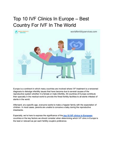 The Top 10 IVF Clinics in Europe, which highlight the top nations for fertility treatments, are presented by World Fertility Services. For couples looking to become parents, Europe has modern technology, high success rates, and low-cost options. European nations continue to be popular IVF destinations due to their highly qualified specialists, moral business methods, and excellent healthcare systems, which promise high-quality treatment and effective reproductive outcomes.