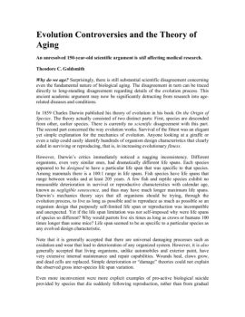 Evolution Controversies and the Theory of Aging An unresolved 150-year-old scientific argument is still affecting medical research. Theodore C. Goldsmith