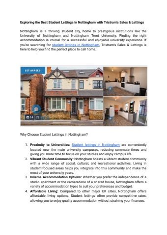 Exploring the Best Student Lettings in Nottingham with Tristram's Sales & Lettings