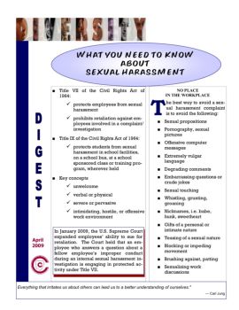 Diversity Digest Page 1 of 8 WHAT YOU NEED TO KNOW ABOUT SEXUAL HARASSMENT April 2009 Title VII of the Civil Rights Act of