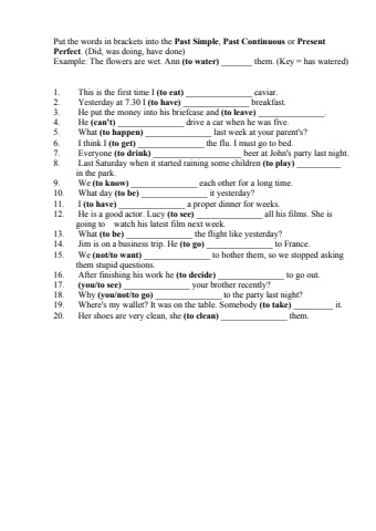 EXERCISE PAST SIMPLE PAST CONT PRESENT PERFECT