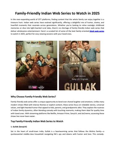 Discover the best family-friendly Indian web series to enjoy in 2025! From the heartwarming Gullak on SonyLIV, capturing middle-class life, to the nostalgic Yeh Meri Family on TVF Play, and the charming rural comedy Panchayat on Amazon Prime, these shows offer humor, relatable family dynamics, and universal values. Perfect for all ages, series like Tripling and Home Shanti blend laughter and heartfelt moments, making them ideal for cozy family viewing sessions filled with shared joy.
