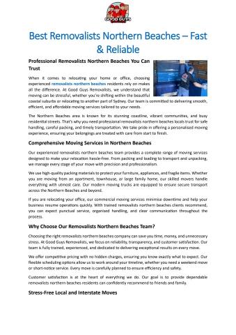 Best Removalists Northern Beaches – Fast & Reliable