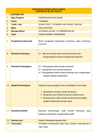 RPH PENDIDIKAN ISLAM TAHUN 5