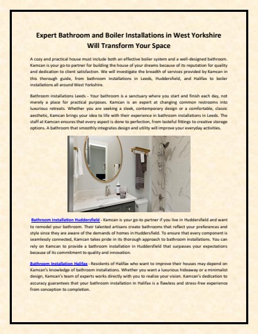 Expert Bathroom and Boiler Installations in West Yorkshire Will Transform Your Space