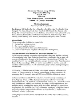Stormwater Advisory Group (SWAG) Organizational Meeting ...