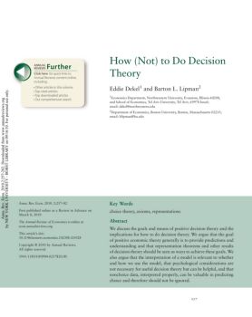 How (Not) to Do Decision Theory Eddie Dekel1 and Barton L. Lipman2 1Economics Department, Northwestern University, Evanston, Illinois 60208, and School of Economics ...