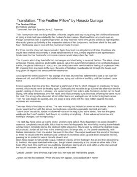 Translation: "The Feather Pillow" by Horacio Quiroga The Feather Pillow By Horacio Quiroga Translated, from the Spanish, by A.Z. Foreman Their honeymoon was one long ...
