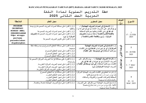 RPT BAHASA ARAB TAHUN 2 2025