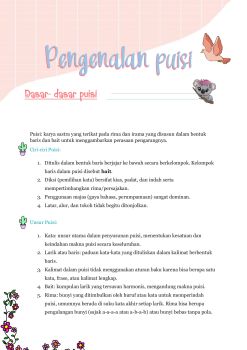 Pengenalan puisi adalah berisi tentang hal-hal yang harus dipelajari dalam membuat puisi,ciri-ciri puisi,unsur puisi,jenis puisi dan bahasa yang digunakan dalam menulis puisi.