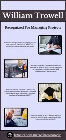 With a degree in Construction Management from BCIT, William Trowell brings expertise in technical planning and field execution to his role as a Construction Project Manager. Based in Trail, BC, he has independently managed builds since 2023, with a focus on blueprint interpretation, regulatory navigation, and sustainability.