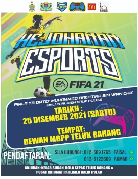 KEJOHANAN E SPORTS PIALA YB DATO’ MUHAMMAD BAKHTIAR BIN WAN CHIK (AHLI PARLIMEN BALIK PULAU)